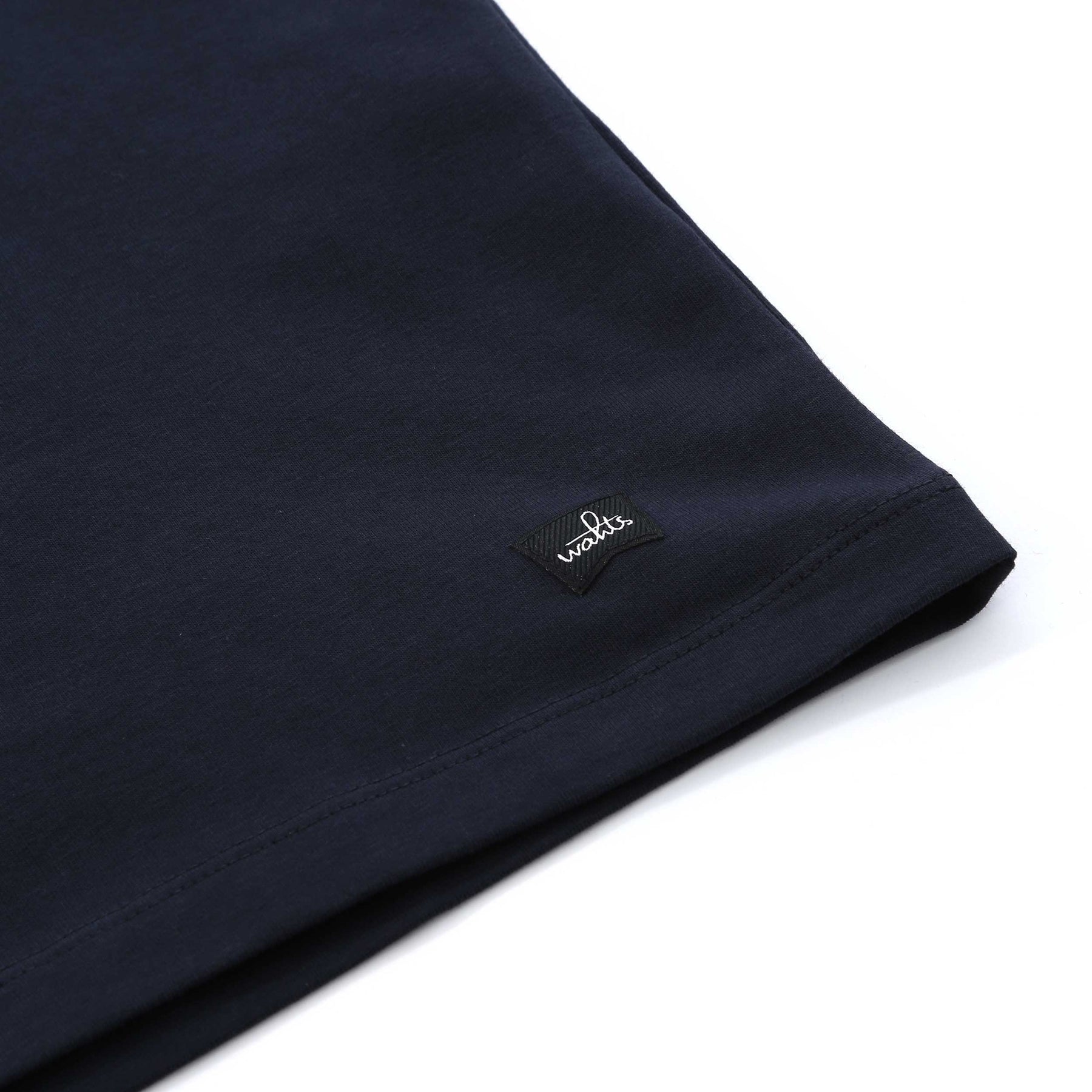 Wahts Berkley Jersey Stretch T Shirt in Deep Navy. Upgrade your everyday essentials with this premium luxury T-shirt, crafted from slightly heavier organic cotton jersey with added stretch for exceptional comfort and durability. The high-quality fabric offers a soft, breathable feel while maintaining a structured shape that elevates this wardrobe staple.